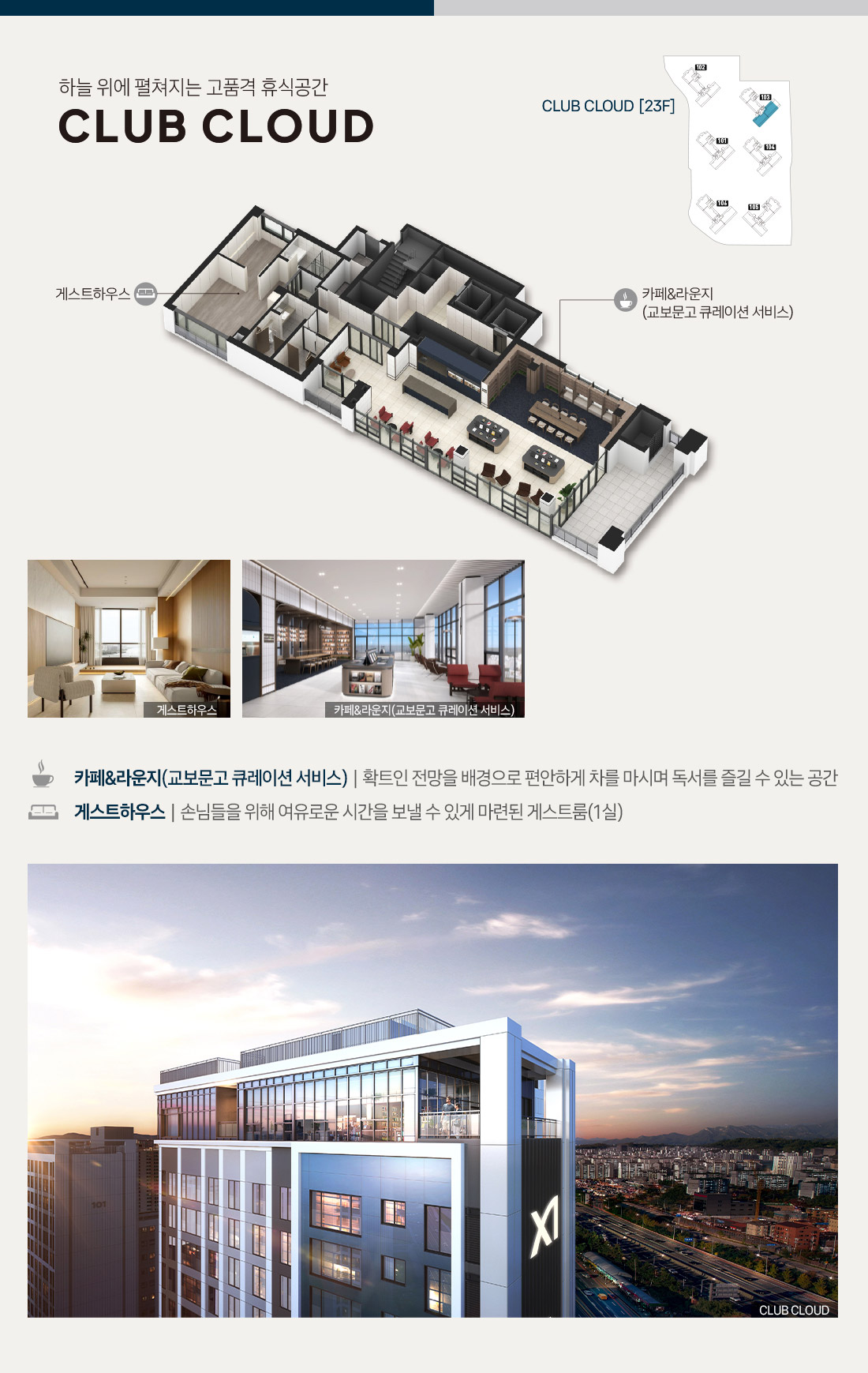 - ※ CLUB CLOUD는 공간의 활용도 개선을 위해 철골조 등으로 구조변경이 될 수 있습니다.